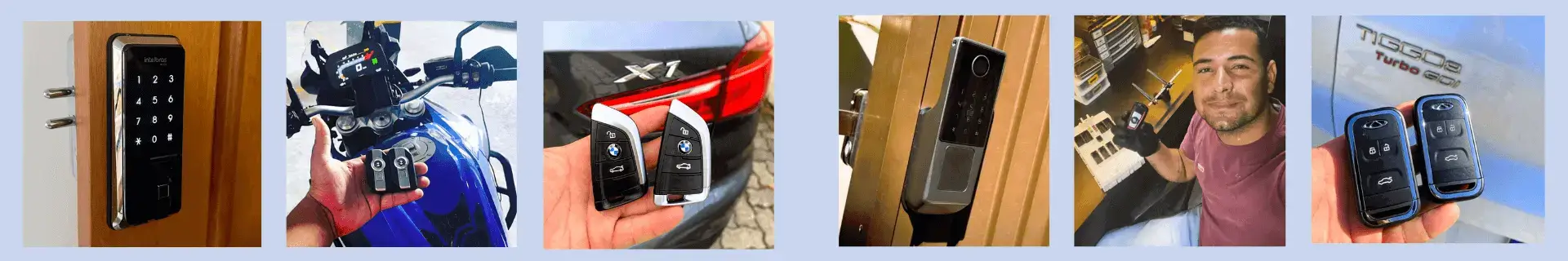 Cópias de chave yale (chave de porta), chave tetra, chave pantográfica, chave mulitpontos (chave para porta blindada), chave magnética, chave de cofre e chaves automotivas.